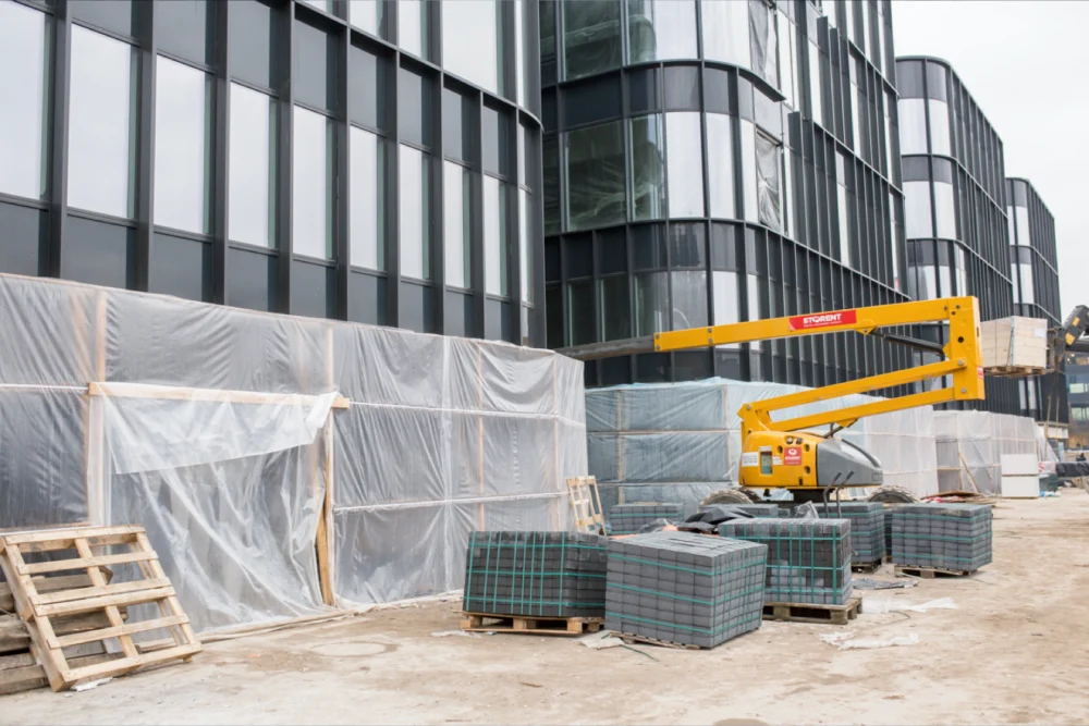 River Hall projekte, Jonavos g. 60, buvo įrengta 2100 m² betoninių trinkelių danga. Darbai prasidėjo nuo itin tikslaus pagrindo paruošimo, užtikrinančio dangos stabilumą ir ilgaamžiškumą. Vėliau atlikti asfaltavimo darbai, pagerinę susisiekimo sąlygas. Siekiant efektyvaus vandens nutekėjimo, įrengti lietaus inžineriniai tinklai. Papildomai buvo suženklintos parkavimo vietos ir įgyvendinti kiti gerbūvio darbai, prisidėję prie estetiškos ir funkcionalios aplinkos sukūrimo.