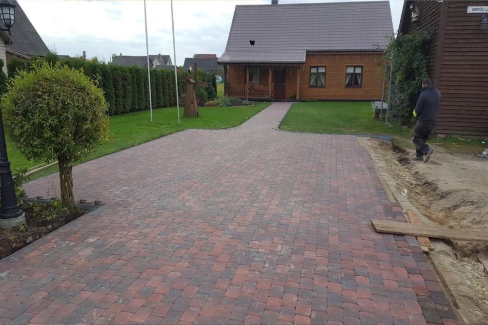 Jiezno mieste, kaimo turizmo sodybos teritorijoje, atlikti trinkelių klojimo darbai. Pradėta nuo kruopštaus pagrindo paruošimo, užtikrinusio paviršiaus stabilumą ir ilgaamžiškumą. Tuomet buvo suklotos estetiškos, aukštos kokybės trinkelės, kurios pagerino teritorijos funkcionalumą ir išvaizdą. Įrengti kelio ir vejos bortai aiškiai apibrėžė zonas bei padėjo išlaikyti trinkelių konstrukcinį vientisumą ir tvarką.