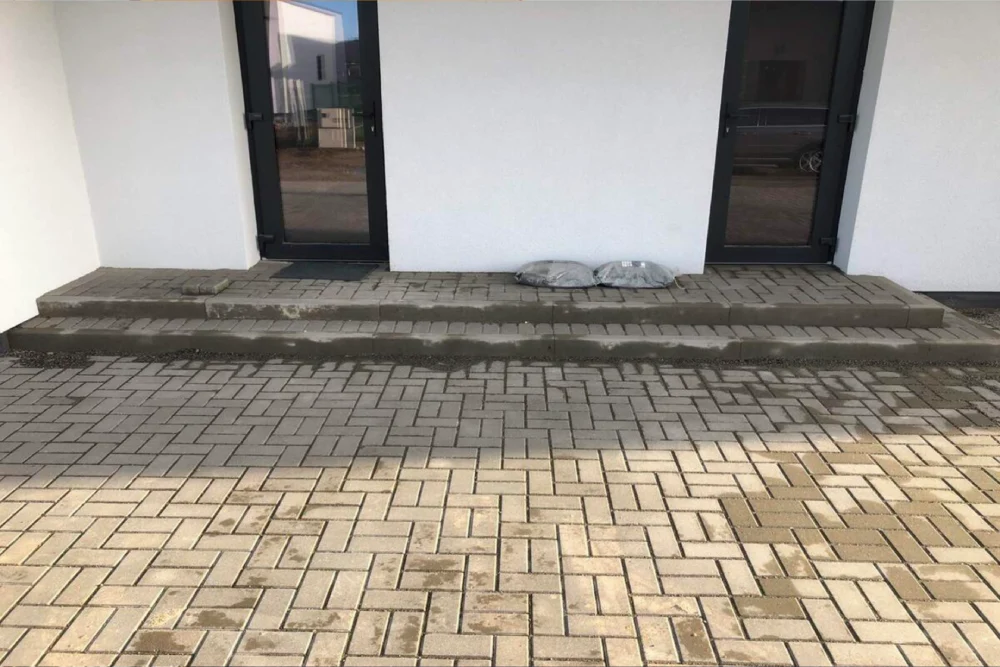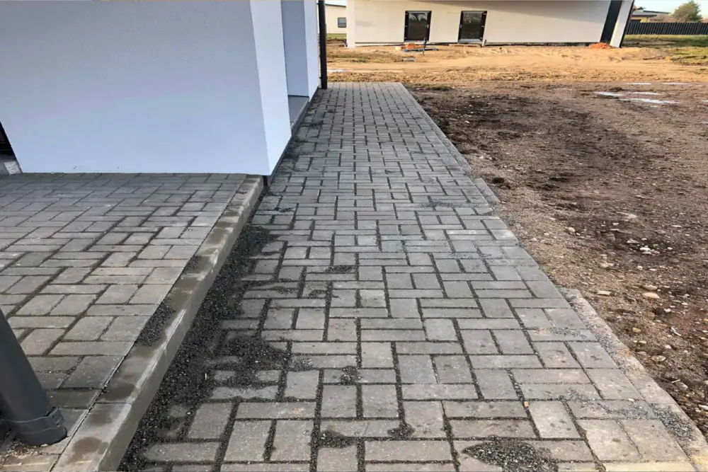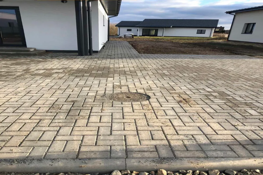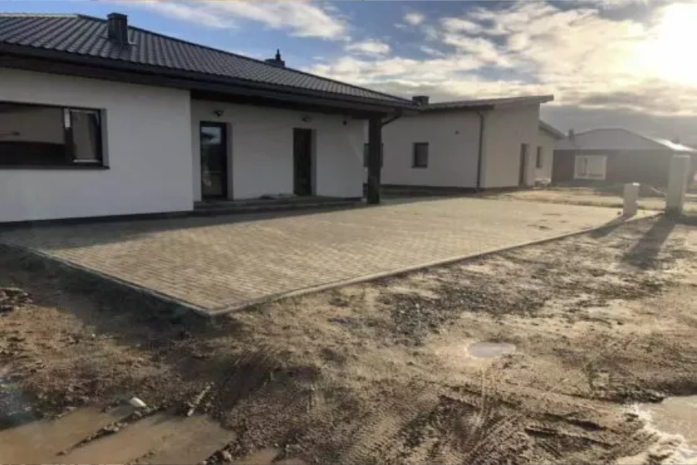 Individualaus namo sklype Mastaičiuose atlikti trinkelių dangos įrengimo darbai. Pirmiausia buvo iškastas ir paruoštas gruntas, kad būtų užtikrintas stabilus pagrindas. Vėliau sumontuota trinkelių danga, suteikianti ne tik estetinį, bet ir funkcinį pranašumą. Įrengti kelio ir vejos bortai padėjo apibrėžti zonas ir išlaikyti dangų stabilumą. Papildomai suformuotos laiptų pakopos, kurios padidina saugumą ir patogumą kasdieniam naudojimui.